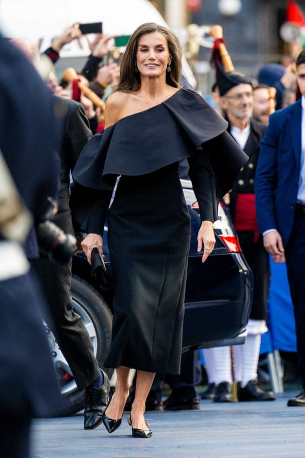 Letizia d'Espagne, majestueuse dans une robe noire one shoulder