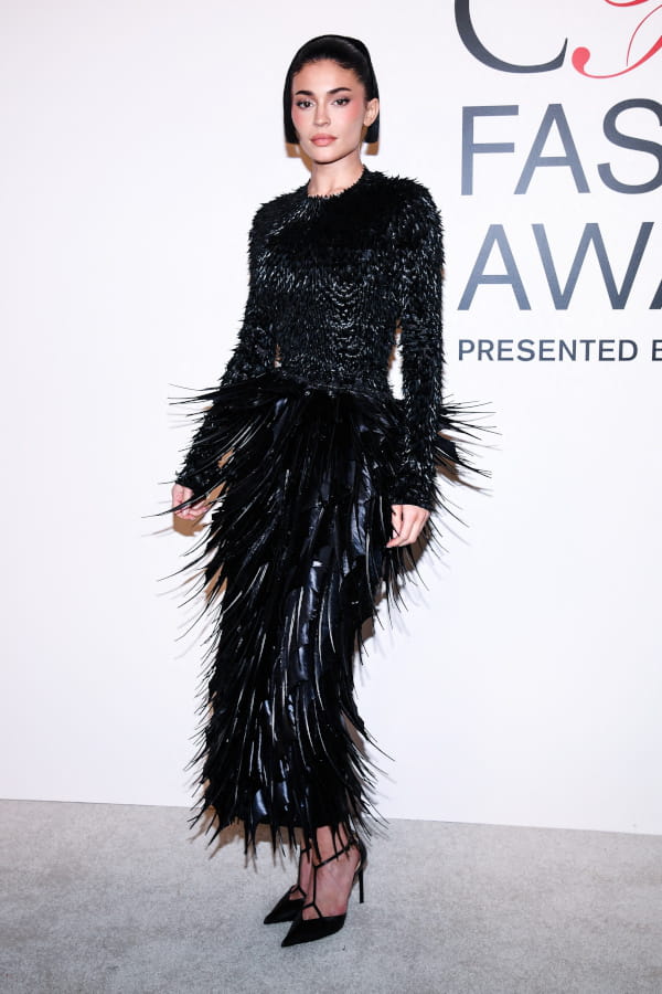 Toute de plumes vêtue, Kylie Jenner signe l'un des looks les plus forts des CFDA Awards