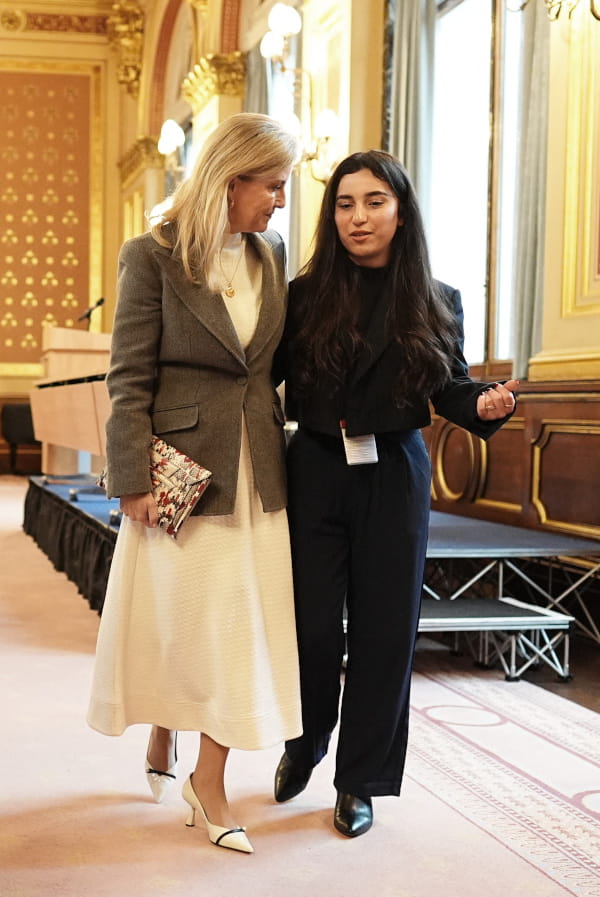 Sophie Rhys-Jones, duchesse d'Édimbourg, était chargée d'inaugurer une exposition photo intitulée "The Women Who Beat ISIS", le 27 novembre dernier et elle s'est présentée à l'évènement dans une robe mi-longue au tissu texturé. Afin de compléter élégamment sa tenue, elle a jeté son dévolu sur une veste de blazer en laine, des talons blancs et une pochette effet peau de serpent.