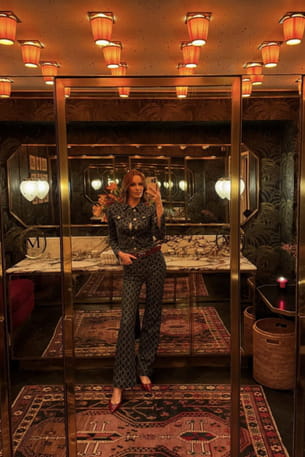 Sur Instagram, Maeva Coucke a, une nouvelle fois, impressionné avec son dernier look. Prenant la pose devant un miroir, elle est apparue habillée d'une veste en jean imprimé du logo Marciano, associée à un jean, évasé sur la longueur, assorti. Mais la touche finale réside sans nul doute dans les accessoires, et notamment sa ceinture bordeaux et ses kitten heels Guess qui allaient avec.
