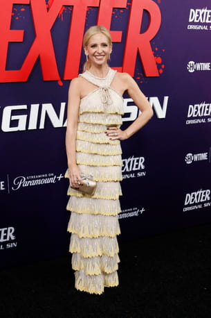 Présente à l'avant-première new-yorkaise de Dexter: Original Sin, ce mercredi 11 décembre, Sarah Michelle Gellar s'est dévoilée dans une longue robe beige et jaune. Une pièce marquée par de nombreux volants, des découpes ainsi que des sequins que la star a accessoirisé d'une pochette à nœud et de bijoux argentés comme des bagues et des pendants d'oreilles. Éblouissante !