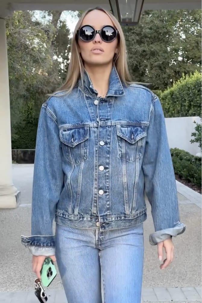Dans une vidéo publiée sur le compte Instagram du magazine Interview, Lily-Rose Depp nous a montré sa façon d'arborer une tenue entièrement en denim. Son look, à la fois tendance et intemporel, se composait d'une veste boutonnée et d'un jean serré auquel elle a ajouté une paire de lunettes de soleil noires et rondes pour encore plus de style. On adore !