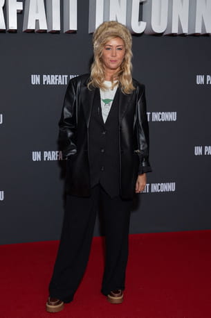 C'est parfaitement bien habillée qu'Enora Malagré a assisté à la première du film Un Parfait Inconnu au Grand Rex. Couverte d'un blazer en cuir conjugué à un T-shirt blanc, un veston et à un pantalon de costume, l'animatrice a égayé sa tenue d'un accessoire à la mode dans les années 90 : la chapka. Du côté des chaussures, elle avait jeté son dévolu sur des mocassins XXL.