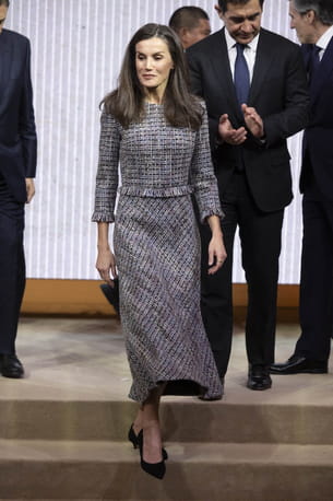 Letizia d'Espagne signe un look renversant dans un ensemble en tweed