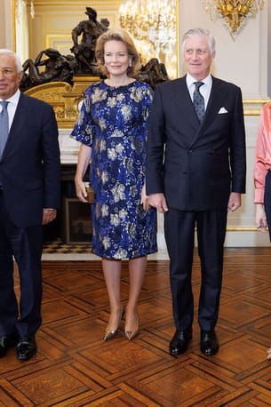 Quand Mathilde de Belgique fait une apparition publique, c'est toujours un grand moment de mode. Démonstration lors d'une récente réception au palais royal de Bruxelles où elle portait à merveille une robe bleue en brocart argenté. Cette création se démarquait également par ses larges manches et sa longueur arrivant juste sous le genou. Un look royal comme elle en a le secret !