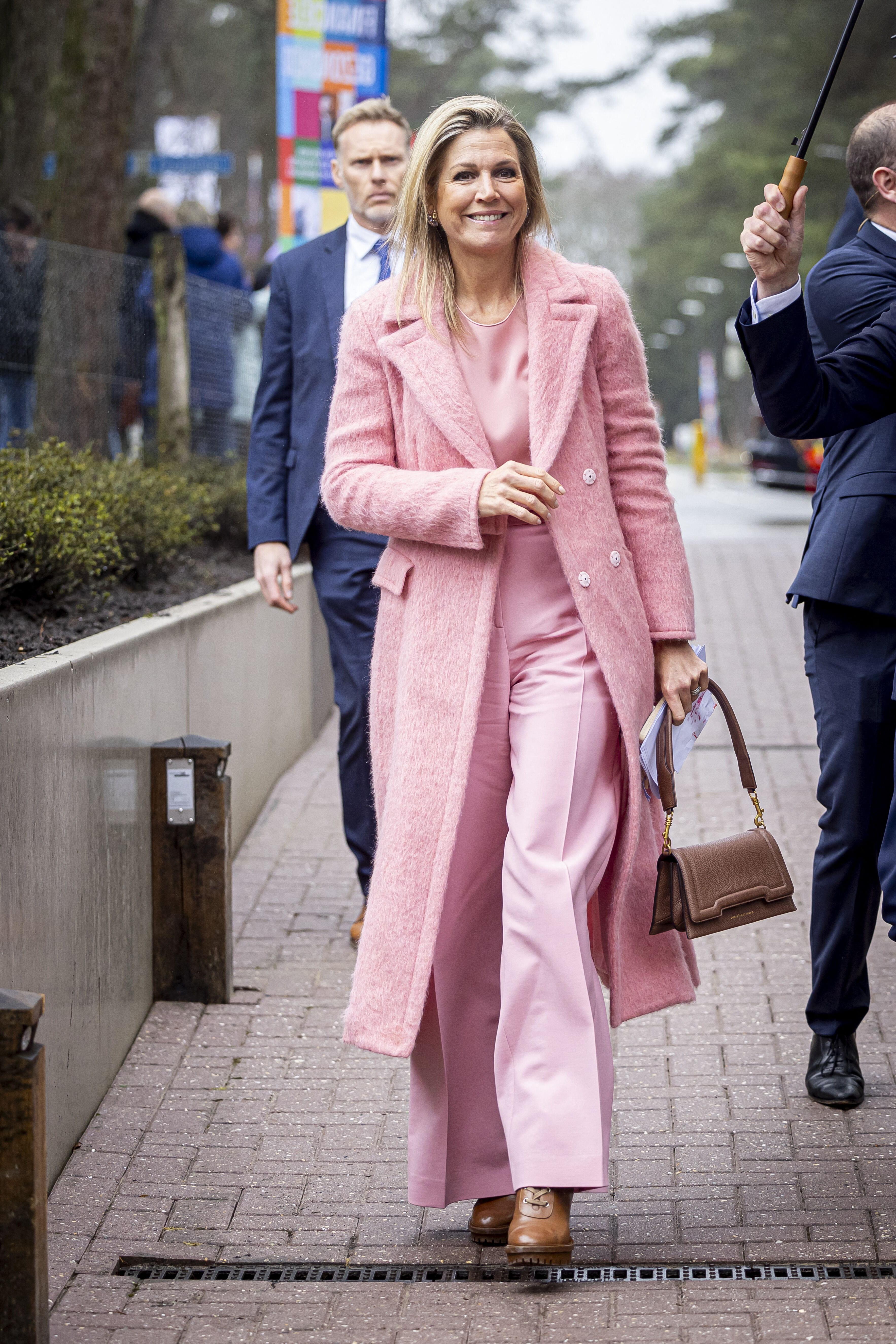 Lors de sa dernière sortie officielle, la reine Maxima des Pays-Bas a choisi d'apporter un peu de gaité à cette météo maussade qui la suit partout. Et pour cela, rien de mieux que d'adopter LA couleur qui met en valeur les blondes : le rose bien sûr ! La reine a donc misé sur un total look rose bonbon composé d'un pantalon à pinces, d'un top en satin et d'un manteau long tout doux. Une tenue assumée qui nous met un peu de baume au cœur.