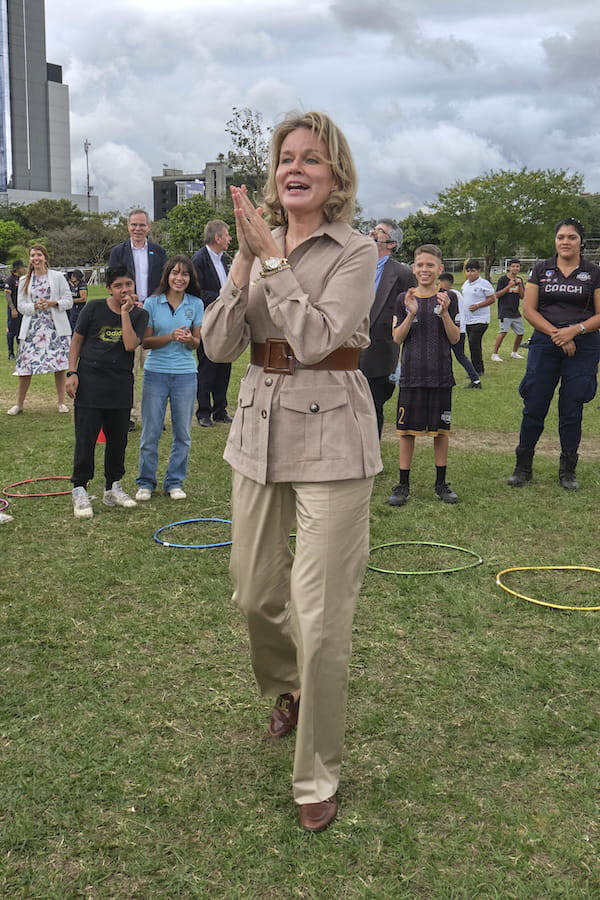Mathilde de Belgique ne manque jamais une occasion d'être stylée, même lorsqu'elle joue au football et au volley-ball avec des enfants à l'occasion de sa mission UNICEF au Costa Rica comme ce fut le cas ce mercredi 12 février 2025. La reine arborait alors une veste saharienne portée avec une grosse ceinture marron ainsi qu'un pantalon beige et ajoutait à cela des mocassins plats. Une tenue à la fois chic mais aussi confortable pour s'adapter au programme de la journée.