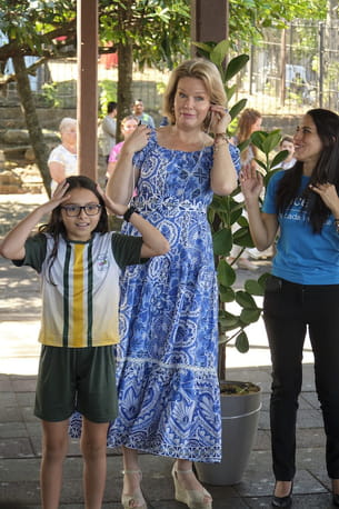 Mathilde de Belgique a porté des silhouettes colorées tout au long de sa mission au Costa Rica avec UNICEF Belgique. Et pour une nouvelle sortie, ce mercredi 12 février, elle a encore misé sur une robe élégante, qui sublimait sa silhouette. Elle s'était alors glissée dans une robe bleue à motifs floraux blancs avec des manches courtes bouffantes et un décolleté bateau. Enfin, ses espadrilles beige clair s'accordaient parfaitement à la tenue. Le tout, pour un rendu moderne et en phase avec le style de la tête couronnée.
