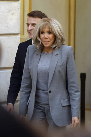 Tout en gris, Brigitte Macron adopte un look de working girl idéal pour l'hiver