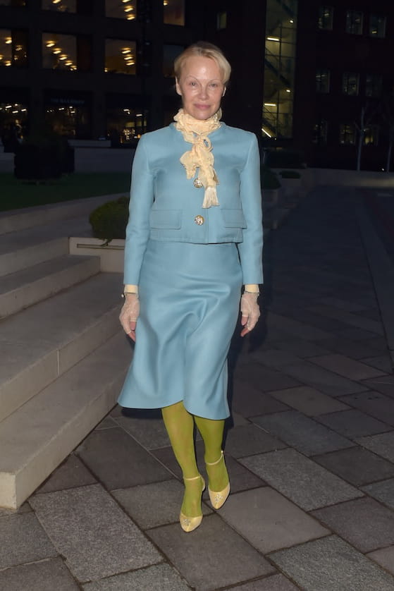 Pamela Anderson délaisse les collants noirs pour une version beaucoup plus voyante