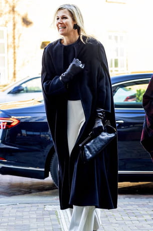 Alors qu'elle se rendait dans un centre d'experts du Erasmus MC à Rotterdam, Maxima des Pays-Bas était tout simplement chicissime. Et pour cause : elle arborait un long manteau-cape noir en superposition sur un pull de la même couleur et un pantalon fluide blanc. Du côté des accessoires, elle avait misé sur des gants en cuir, une pochette assortie et des bottines crantées… Une silhouette qui change totalement des looks colorés dans lesquels on a l'habitude de voir la reine.