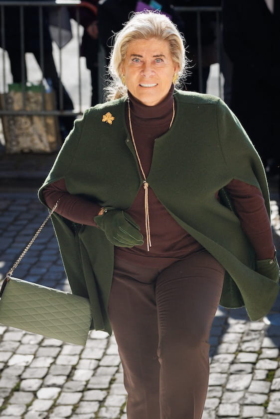 Réunie avec les siens à l'occasion d'une messe en hommage aux membres défunts de la famille royale, Léa de Belgique s'est affichée dans un look bicolore aussi canon que moderne. Elle avait ainsi revêtu un col roulé marron et un pantalon de costume de la même nuance avec une cape vert foncé assortie à des gants en daim ainsi qu'à un sac à main matelassé. Et surprise : les deux couleurs s'harmonisaient parfaitement ! Sa broche dorée et son sautoir noué accentuaient également l'élégance de la tenue.