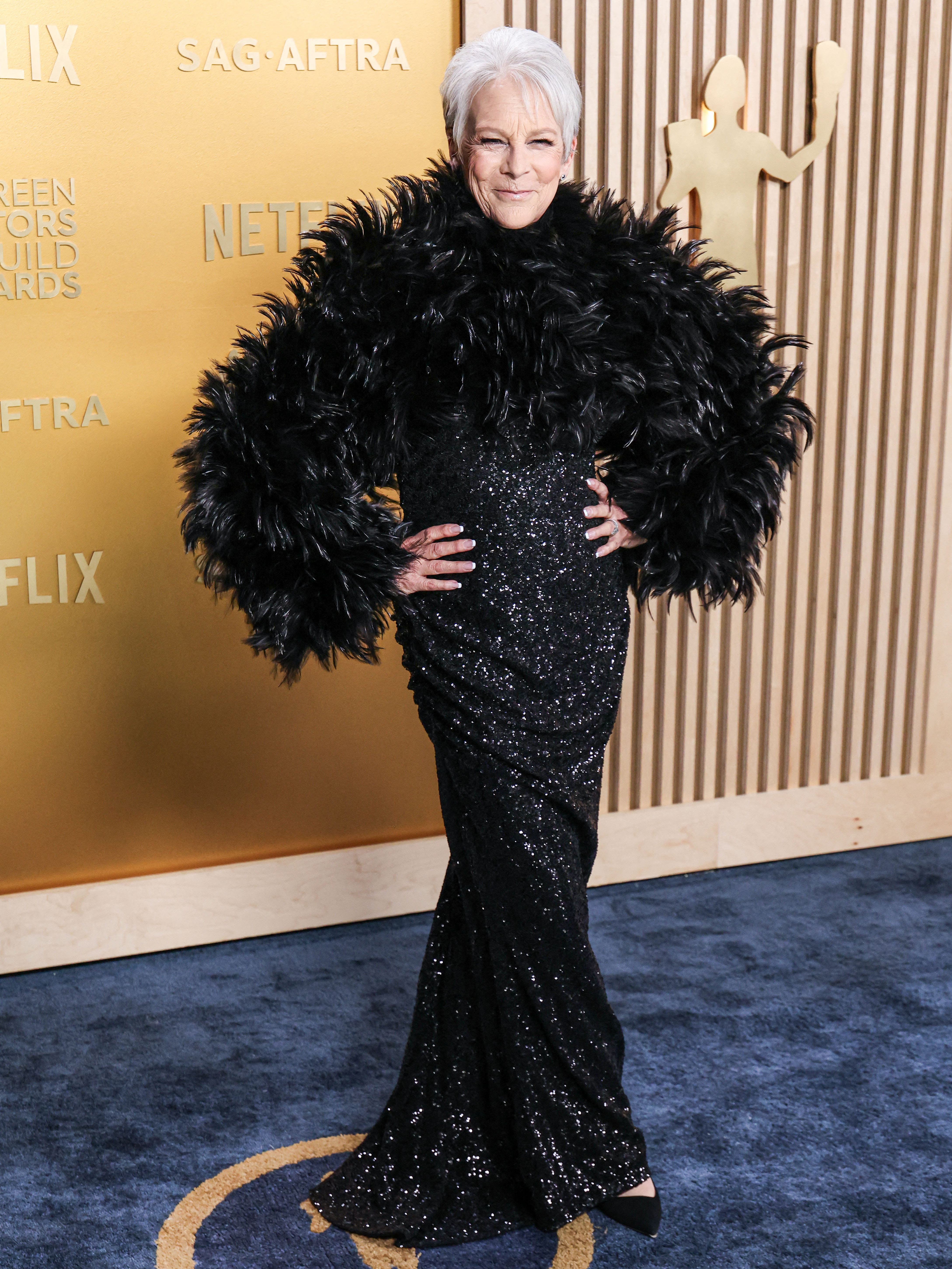 Parmi les stars présentes à Los Angeles pour assister aux SAG Awards 2025, il y avait Jamie Lee Curtis. L'actrice de 66 ans a d'ailleurs osé un look surprenant pour se faire remarquer lors de cette soirée mondaine. En effet, elle n'a pas hésité à sortir de son dressing, une longue robe scintillante dont les bras, la poitrine et le cou étaient recouverts de froufrous. Une pièce originale qu'elle seule peut se permettre de porter !