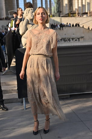 Dès son arrivée au Palais de Tokyo pour assister au défilé Elie Saab automne-hiver 2025-2026, ce samedi 8 mars, María Olympía de Grèce a fait crépiter les flashes des photographes par son élégance et son audace. Renversante comme à son habitude, elle avait opté pour une pièce en tulle semi-transparente du couturier libanais, dotée de broderies exotiques et de guipures. Un choix judicieux pour révéler avec subtilité ses bras et ses jambes interminables tout en mettant en valeur son teint diaphane. Enfin, la fille du prince héritier Pavlos de Grèce signait son allure avec une paire de talons à brides.