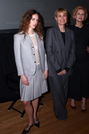 L'actrice Judith Godrèche a fait une apparition remarquée en compagnie de sa fille Tess Barthélémy lors de la projection du film Moi Aussi, le 11 mars 2025 au Lincoln Center de New York. En témoignent les photos prises devant le photocall où le duo mère-fille apparaît avec des tenues élégantes à souhait. Pour Judith Godrèche, le choix s'était porté sur un ensemble de costume gris chiné avec des bijoux argentés et des accessoires noirs alors que sa fille portait un tailleur-jupe pied-de-poule accompagné d'un top à sequins et de babies pointues.
