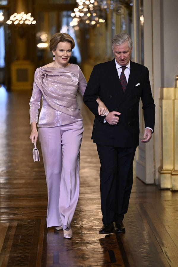 Mathilde de Belgique a fait sensation aux côtés de son époux lors du concert du printemps 2025 organisé ce jeudi 13 mars. La raison ? Elle avait misé sur un ensemble lumineux qui annonçait les beaux jours. Signé de la maison Natan, il était composé d'une blouse pailletée à l'effet drapé et d'un pantalon habillé à pinces de couleur lilas. Pour achever son look, la maman d'Elisabeth, Gabriel, Eléonore et Emmanuel portait des escarpins en satin et une pochette Dior, en accord avec sa tenue. Le tout rehaussé par des pendants d'oreilles incrustés d'une pierre de Sotherby's.