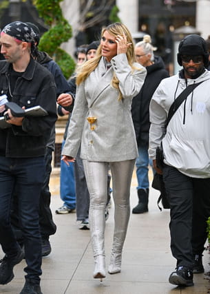 L'icône de style Heidi Klum a encore frappé. En effet, elle a été aperçue il y quelques jours sur le tournage du concours Germany's Next Topmodel avec une tenue tape à l'œil. Au programme de son look ? Un tailleur argenté entièrement décoré de sequins brillants. La veste de blazer présentait une coupe droite, une fermeture sur le côté et une fleur en or intégrée alors que le pantalon très près du corps se fondait avec les bottines à talons assorties. Le choix de ce modèle est judicieux pour ne pas passer inaperçue à l'écran et faire sensation. Une vraie fashionista !