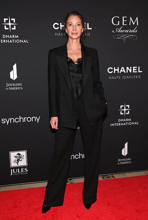 De toutes les personnalités invitées à la prestigieuse cérémonie des Gem Awards 2025, ce vendredi 14 mars, c'est Christy Turlington qui a le mieux soigné son entrée sur le tapis rouge. La mannequin phare des années 90 a pris la pose vêtue d'un smoking noir caractérisé par une veste de blazer structurée et déboutonnée et par un pantalon de costume droit. Pour compléter la silhouette monochrome, un débardeur en dentelle, des escarpins pointus et des bijoux dorés s'ajoutent à l'ensemble. Bref, un sans-faute.