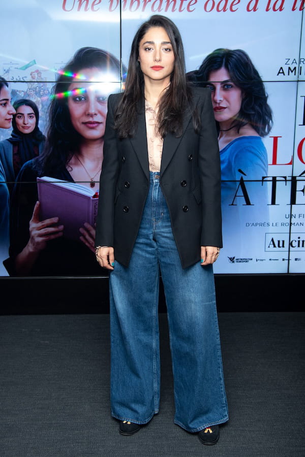 À l'occasion de l'avant-première parisienne du film Lire Lolita à Téhéran, ce jeudi 20 mars, Golshifteh Farahani a fait sensation en lovant sa silhouette dans un look intemporel. C'est donc vêtue d'une veste de blazer à épaulettes et d'un jean taille haute à la coupe oversize que l'actrice franco-iranienne de 41 ans est apparue sur le tapis rouge du photocall. Associé à une blouse nude romantique et à des mocassins en daim comme elle l'a fait, ce combo mode devient instantanément chic et élégant. De quoi nous inspirer !