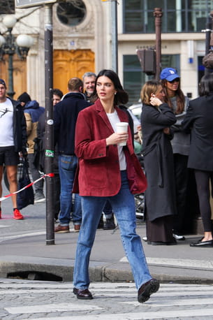 Le samedi 22 mars, Kendall Jenner a été repérée à Paris, à l'occasion d'un shooting pour la marque L'Oréal Paris, dont elle est l'égérie. Devant les photographes, la star est apparue avec un look casual dont on s'inspire sans hésiter. Cette tenue confortable et chic est idéale à porter au quotidien. Elle portait, en effet, un jean bleu taille haute associé à un top blanc et une veste en daim absolument divine. Grande tendance de l'année, cette veste mi-longue de couleur rouge se mariait parfaitement à son rouge à lèvres.