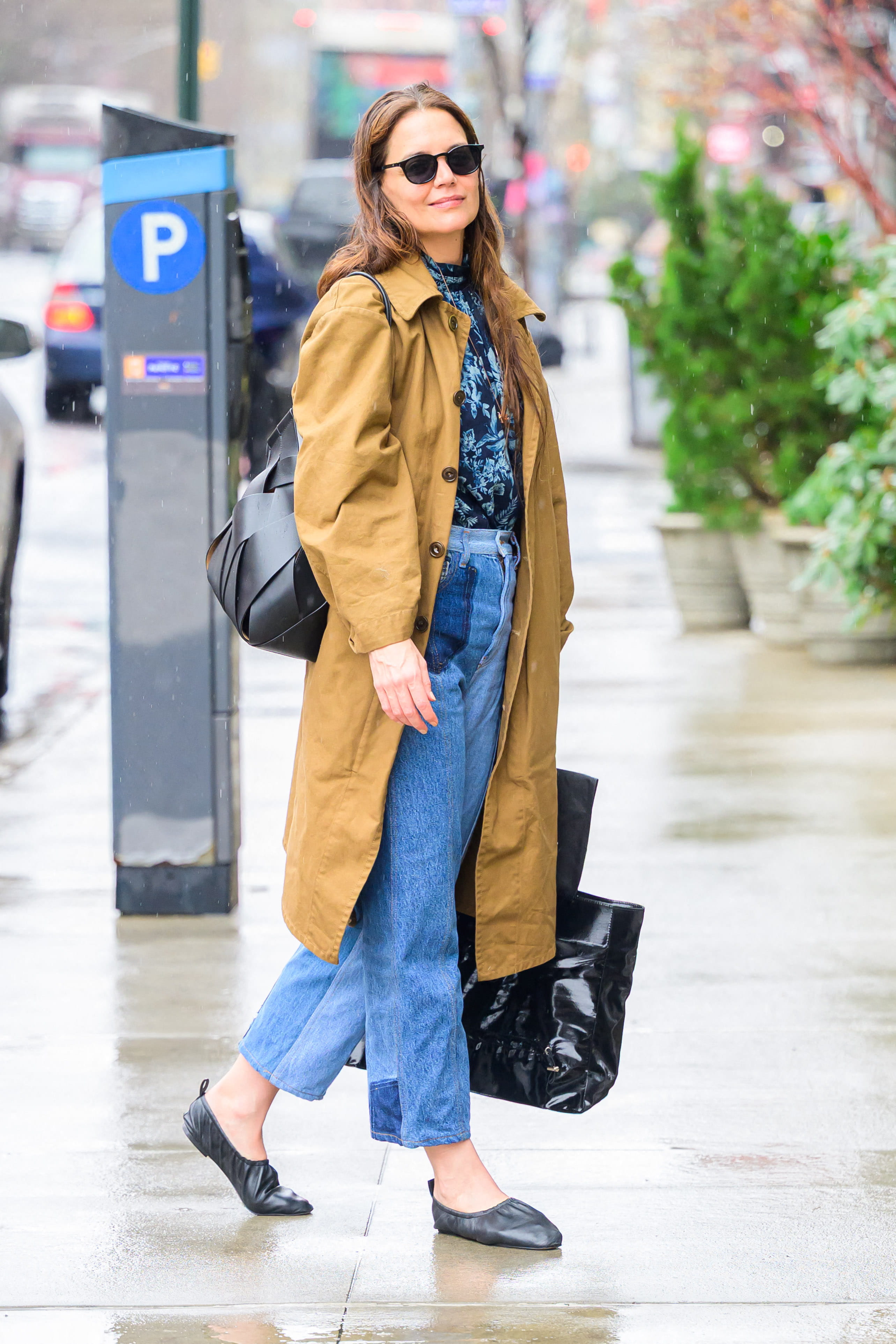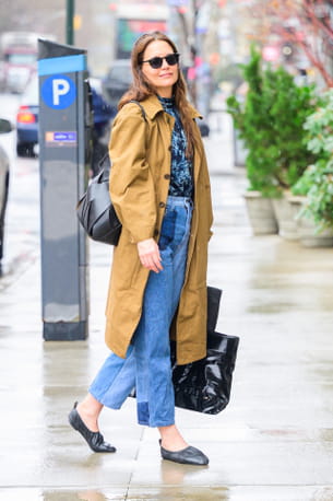 Lundi 24 mars à New York, Katie Holmes s'est rendue à son cours d'art comme chaque semaine. Les photographes étaient évidemment aux premières loges pour accueillir la star et la prendre en photo sous tous les angles. Comme à son habitude, l'actrice est arrivée avec une tenue chic et confortable. Elle a craqué pour un trench-coat long de couleur moutarde, qu'elle a associé à un haut bleu marine à fleurs et un jean d'inspiration vintage. Elle a ensuite complété son look avec des ballerines noires et un grand cabas.