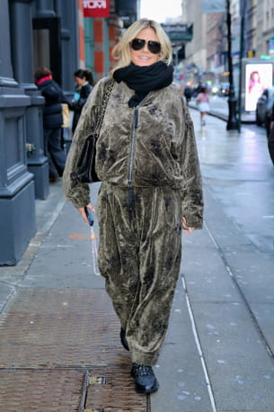 Pour faire du shopping à Soho, Heidi Klum a choisi d'opter pour une tenue pratique et confortable. La jolie blonde a délaissé ses talons aiguilles au profit d'une paire de baskets pour être le plus à l'aise possible. Côté vêtements, le top de 51 ans a assumé l'ensemble cocooning en velours. En effet, elle a enfilé un jogging oversize et une veste à fermeture éclair à la coupe large également. Cet ensemble tout doux était complété d'une écharpe en cachemire noire. Pour Heidi Klum, les tenues printanières ne sont pas encore pour tout de suite !