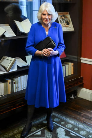 À chacune de ses apparitions, Camilla Parker-Bowles éblouit par ses looks à la fois audacieux et traditionnels. À 77 ans, l'épouse de Charles III, arrive à préserver le côté anglais authentique de toutes ses tenues. Ici par exemple, elle porte une robe à la coupe légèrement plissée, ornée d'une fermeture éclair sur le devant. Mais, si cette pièce mode est tout à fait classique, elle revêt une couleur absolument divine : un bleu majorelle qui se marie parfaitement à sa chevelure blanche. Une vraie réussite !
