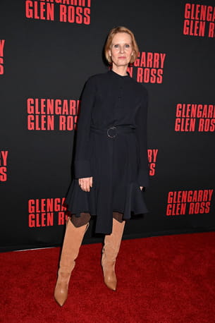 Ce 31 mars à New York, Cynthia Nixon était irrésistible pour assister à la soirée Glengarry Glen Ross de Broadway. Sur le tapis rouge, l'actrice a fait sensation dans une robe fluide noire ornée d'une ceinture à boucle. Cette coupe évasée est idéale pour les femmes de plus de 50 ans puisqu'elle met parfaitement la silhouette en valeur. Pour accompagner cette robe, la star de la série Sex and the City a opté pour des bottes hautes de couleur camel et à l'esprit santiag. À porter sans modération tout le printemps.