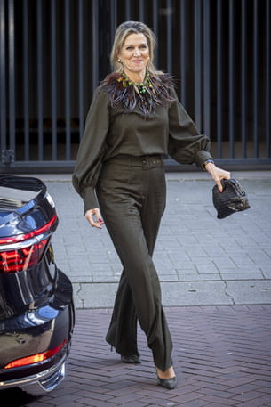 Le 1er avril, la reine Maxima des Pays-Bas a visité l'association pour la jeunesse Quardin située à Rotterdam. Pour l'occasion, la reine de 53 ans s'est illustré avec un élégant ensemble pantalon vert kaki de la marque Natan. Ce dernier était rehaussé d'un accessoire des plus imposants. Elle avait attaché à son cou un collier extravagant orné de plumes bleues et marron, mêlées à des perles de plusieurs couleurs. Preuve supplémentaire que la reine peut vraiment tout porter tant son élégance est naturelle.