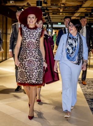 La reine Maxima des Pays-Bas joue la carte de l'audace avec un look à plumes