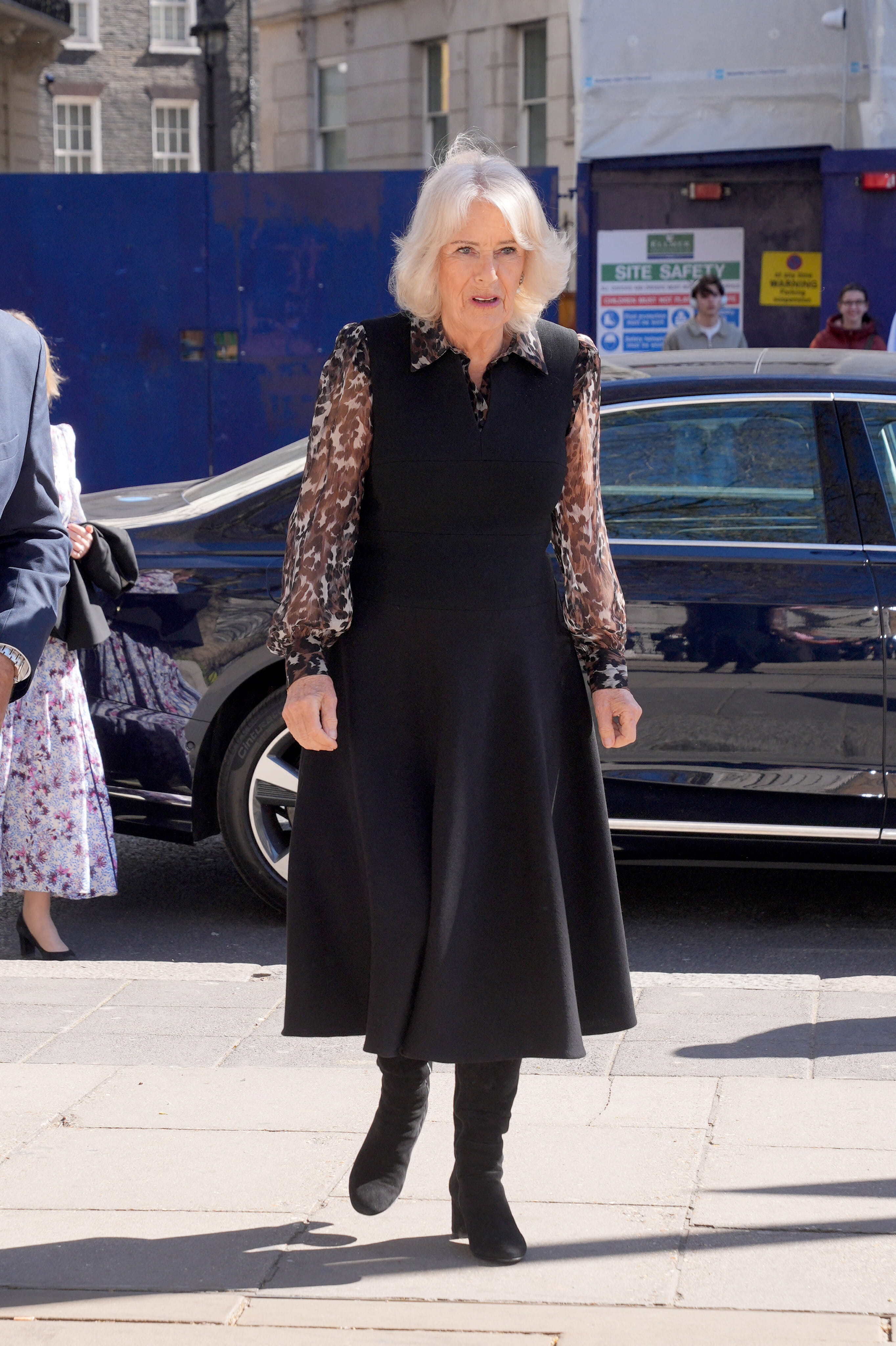La reine Camilla poursuit ses différents engagements publics en ce mardi 1er avril. Et le moins que l'on puisse dire, c'est qu'elle a surpris tout le monde avec une tenue moderne. Elle portait une robe chasuble noire signée Fiona Clare, superposée à un chemisier transparent à imprimé léopard. L'épouse du roi Charles a également enfilé des bottes en daim ainsi que son bracelet signature vert et or de la marque Van Cleef & Arpels. Loin d'être "mémérisant", ce look lui donnait 10 ans de moins. Inspirant !
