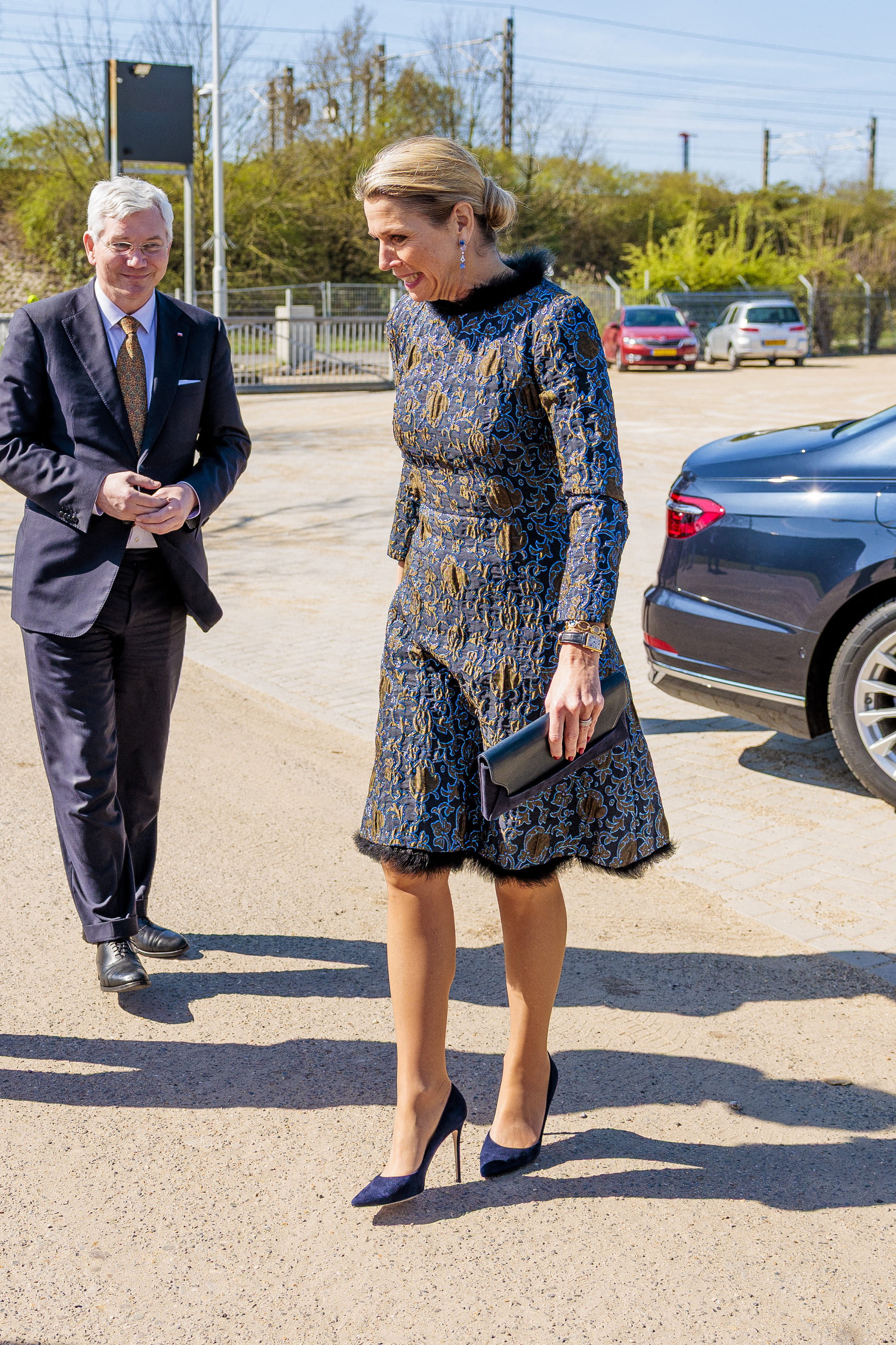 Les plumes, c'est la nouvelle addiction de la reine Maxima ! En effet, ces derniers jours, elle enchaîne les tenues à plumes et elle a bien raison puisqu'elles lui vont comme un gant. Ce mercredi 2 avril, elle s'est rendue à Rotterdam pour baptiser un nouveau voilier de l'organisation Sear Ranger Service. La reine Maxima des Pays-Bas a dévoilé pour l'occasion, une robe Natan bleu et dorée à l'esprit baroque. Le col était subtilement rehaussé de petite plumes apportant une touche d'originalité à son allure.