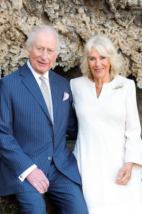 Le roi Charles et la reine Camilla ont posé dans les jardins de la Villa Wolkonsky, ce lundi 7 avril, le temps d'une séance photo pour leurs 20 ans de mariage. Sur son 31 pour l'occasion, Camilla Parker-Bowles avait choisi une robe immaculée de la griffe Anna Valentine, comprenant un mini col en V et des manches légèrement évasées. La tête couronnée portait aussi une broche de Fabergé en forme de muguet, sa fleur favorite, épinglée au niveau de la poitrine afin d'apporter de l'éclat à sa tenue. Un look qui avait tout pour plaire : de l'élégance, du style et une classe innée.