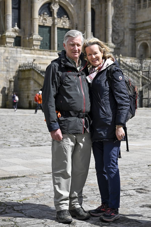 Ce mercredi 16 avril 2025, la famille royale belge a marqué les esprits en terminant son pèlerinage à Saint-Jacques-de-Compostelle. Pour ce moment sportif, Mathilde de Belgique arborait une tenue plus qu'adaptée : une doudoune bleu marine Jott, un pantalon accordé, un sac à dos aux détails rouges et des chaussures de randonnée. Le détail mode ? Le foulard imprimé en soie qui sublimait son cou et ajoutait une touche de couleur à l'ensemble. Et le moins que l'on puisse dire, c'est que ça lui va bien !