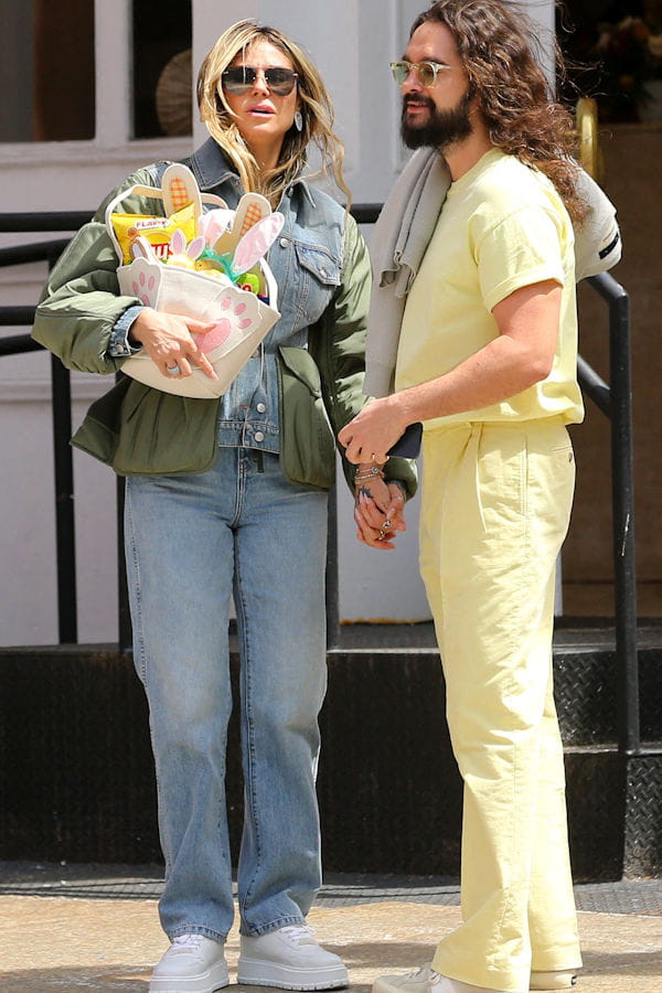 Dimanche 20 avril, Heidi Klum a été aperçue dans les rues de New York alors qu'elle avait fait ses courses pour célébrer Pâques en famille. Pour l'occasion, elle avait laissé au placard ses robes sexy au profit d'un total look denim à tomber. Ce look ultra-printanier est idéal pour la saison et se prête à toutes les occasions. Elle a donc opté pour un jean droit bleu délavé associé à une veste en jean cintrée pas comme les autres. En effet, elle était composée d'empiècements en tissu kaki pour une pièce originale à souhait.