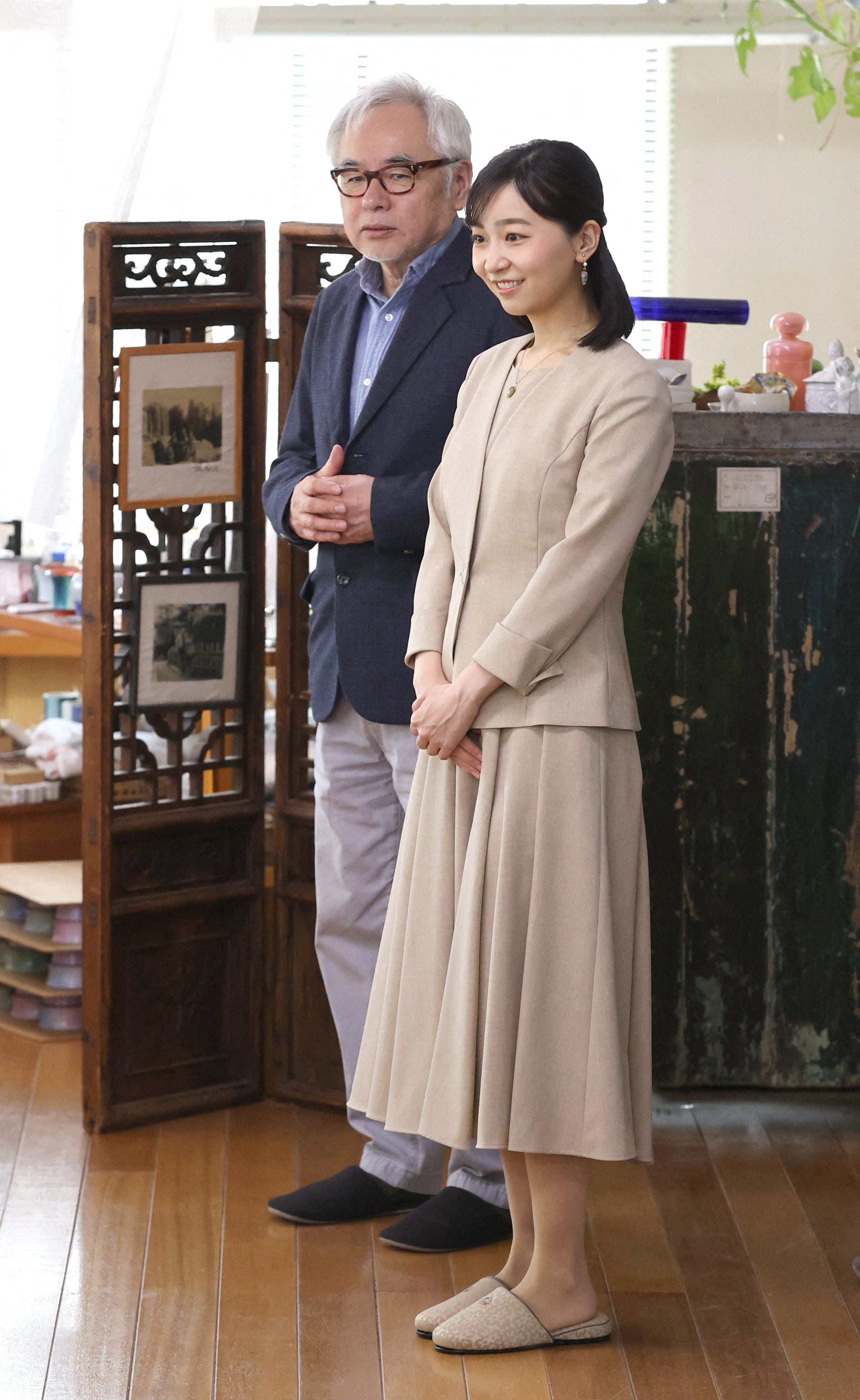 Le 18 avril 2025, la princesse japonaise Kako a visité un atelier de poterie de Kutani situé à Komatsu, dans la préfecture d'Ishikawa. Pour l'occasion, elle portait une tenue beige monochrome, presque ton sur ton avec sa peau. La jeune femme avait misé sur une robe midi écru qui disposait d'une jupe plissée. Sa coupe évasée mettait en valeur sa silhouette longiligne. Pour ne pas risquer d'avoir froid, elle avait choisi d'ajouter une veste de tailleur cintrée de la même couleur que sa robe. Sourire aux lèvres, elle affichait un look raffiné.