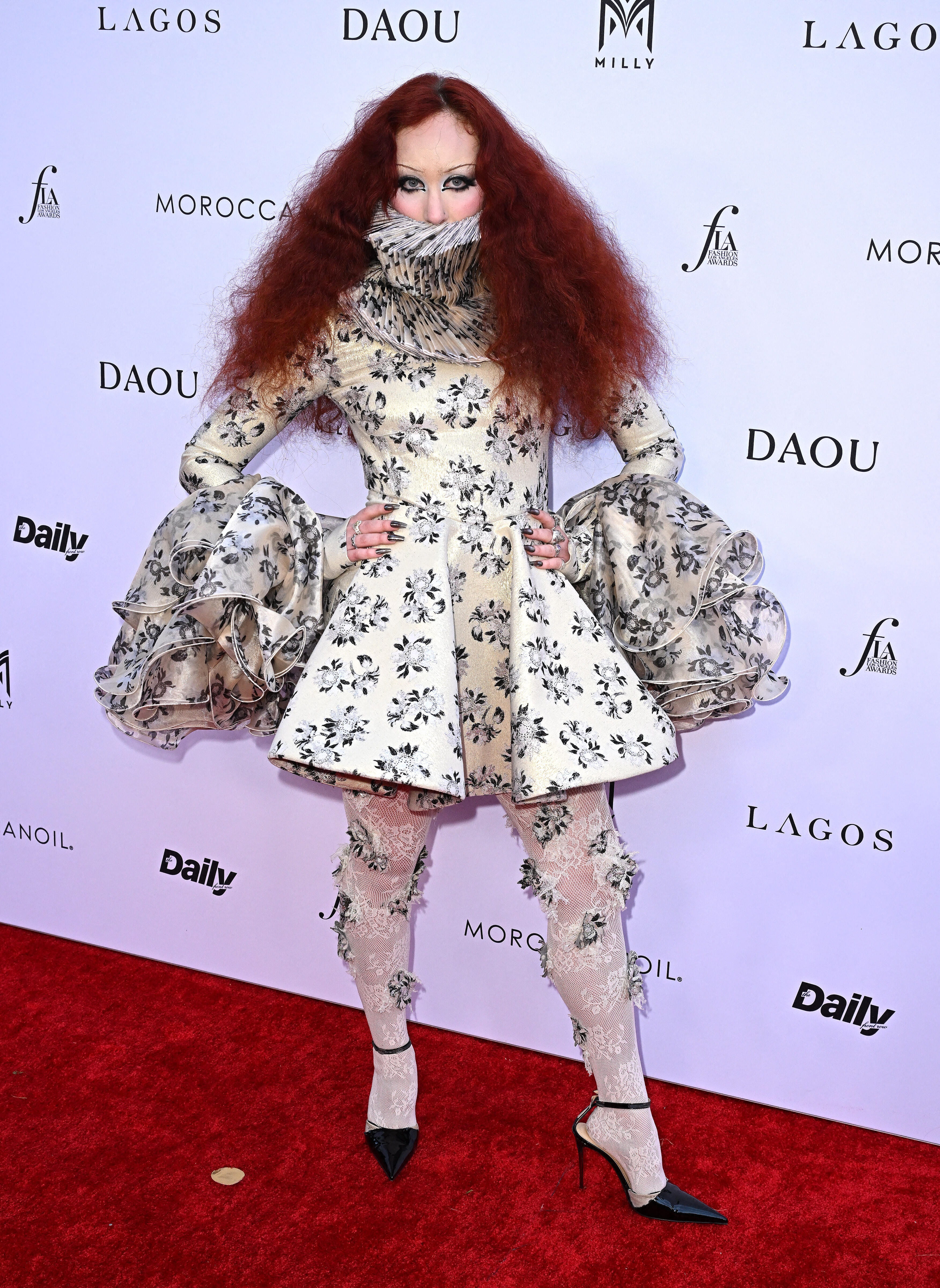 Jeudi 24 avril à Beverly Hills, avait lieu, la 9e édition des Fashion Los Angeles Awards du Daily Front Row. Sur le tapis rouge, on a pu retrouver Chappell Roan, la musicienne américaine, qui a fait une apparition spectaculaire. Elle portait une tenue des plus excentriques à travers une robe courte à manches longues sur laquelle était ornée de nombreuses fleurs. Col imposant et manches bouffantes, cette pièce possédait des détails extravagants. Même les collants blancs en dentelle étaient assortis à cette robe à l'esprit baroque.