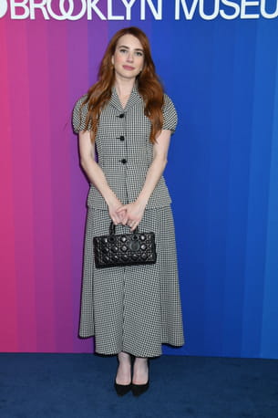 Pour la soirée organisée au Brooklyn Museum à New York, Emma Roberts a choisi d'afficher un look rétro à souhait. Tout droit inspirée des années 1950, sa tenue se composait d'une veste en laine pied-de-poule dotée de manches courtes légèrement bouffantes et d'une jupe longue coordonnée de la maison Dior. Cet ensemble a été conçu par la directrice créative Maria Grazia Chiuri et son rendu était juste incroyable. L'actrice a ajouté à son look une paire de talons à bout pointu et un sac noir de la maison française.