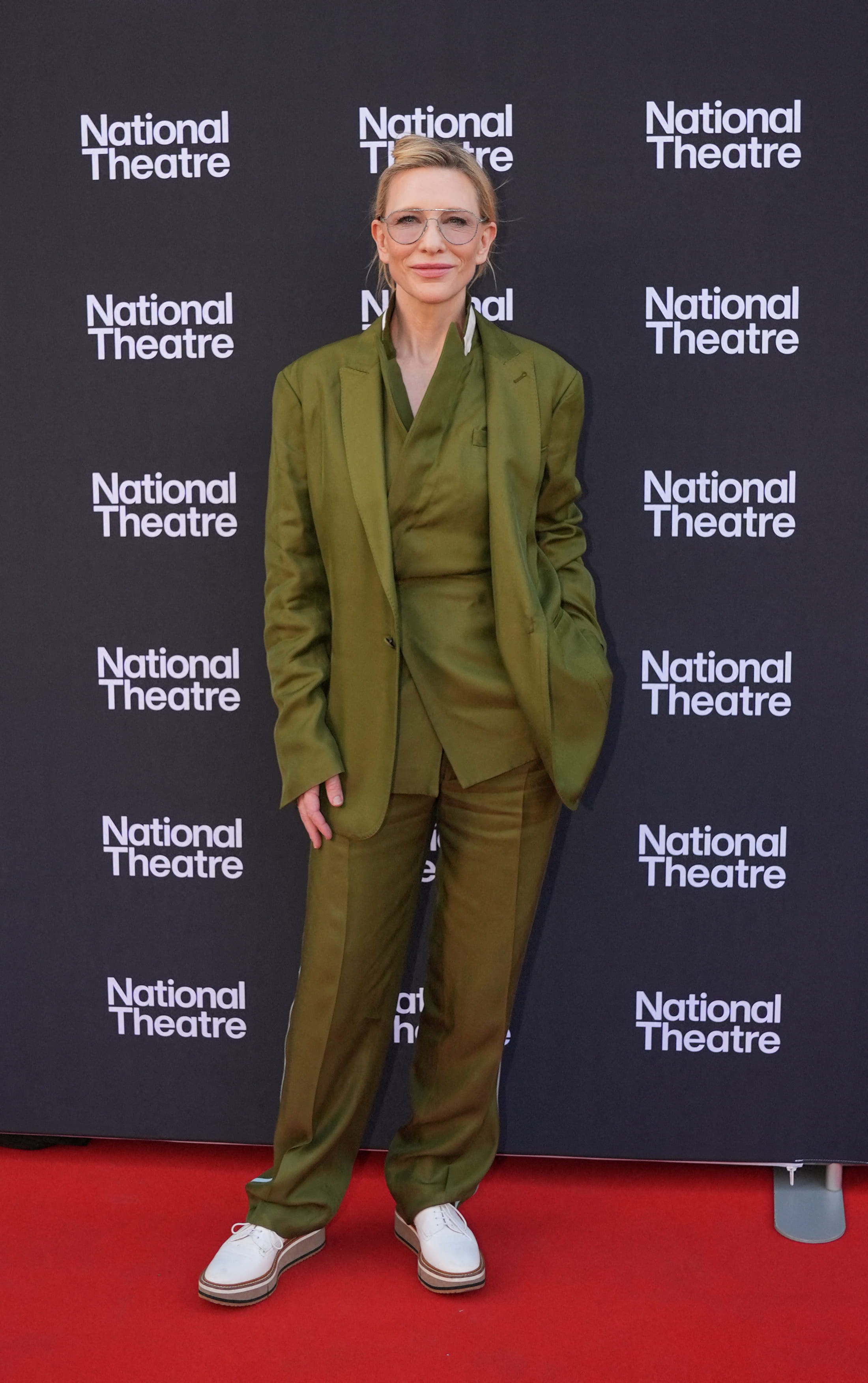 Cate Blanchett est absolument superbe dans cette tenue décontractée alors qu'elle assistait au lancement de la saison 2025 du National Theatre à Londres. Elle s'était lovée dans un costume 3 pièces vert satin qui lui octroyait une élégance certaine. Ce coordonné est intelligemment constitué d'une longue tunique longue kaki, d'une veste de blazer ample et d'un pantalon large. Un choix qui s'accordait à merveille avec son teint et la blondeur de ses cheveux. A 55 ans, elle est plus tendance que jamais !