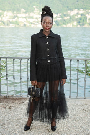 A chacune de ses apparitions, Lupita Nyong'o offre des looks hautement maitrisés. Ici, l'actrice a choisi de faire hommage à la marque française Chanel avec un total look noir. Elle portait une veste en tweed dont elle avait boutonné l'ensemble des boutons, mais aussi et surtout, une jupe transparente en tulle qui dévoilait ses jolies jambes tout en sobriété. Jouant avec les superpositions et les différentes textures, cette tenue offrait un rendu élégant et distingué qui mettait en valeur la beauté naturelle de la star.