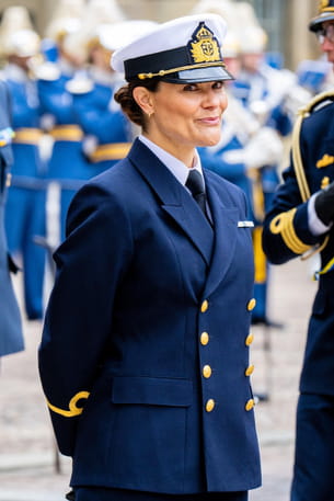 En uniforme de la marine royale, Victoria de Suède est élégante
