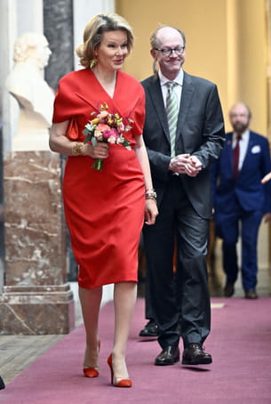 Le mercredi 30 avril, la reine Mathilde de Belgique a remis le Prix biomédical Baillet Latour 2025 au Palais des Académies à Bruxelles. Plus souriante que jamais, la belle blonde a fait sensation dans une tenue flamboyante où on ne voyait qu'elle. Elle a osé tout simplement le total look rouge à travers une robe à hauteur des genoux. Cette robe midi rouge cerise était signée de la marque Safiyaa Flora et elle était tout simplement spectaculaire. Pour compléter son look, elle portait des escarpins de la marque couleur.