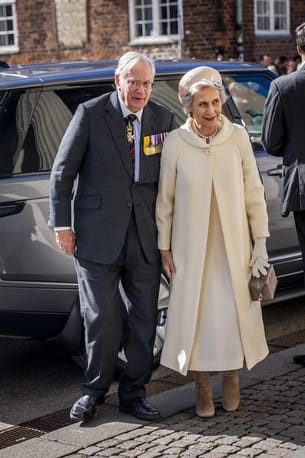 La duchesse Birgitte de Gloucester était de retour dans son pays natal ce dimanche 4 mai pour les 80 ans de la libération du Danemark. Pour l'occasion, elle est arrivée devant la cathédrale de Copenhague habillée d'une tenue totalement immaculée. Composée d'une longue robe, d'un manteau en tweed de la même longueur, d'une paire de gants et d'un bibi, cette allure monochrome lui allait à ravir. Seuls sa pochette en cuir de couleur taupe et ses bottes en daim contrastaient avec le reste pour un rendu ultra désirable.