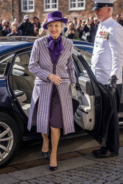 La princesse Benedikte adopte une couleur symbole de royauté pour cet événement spécial