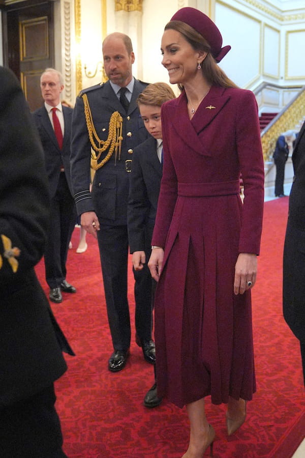 Kate Middleton se fait remarquer dans une tenue prune très bien pensée au palais de Buckingham © PA Photos/ABACA