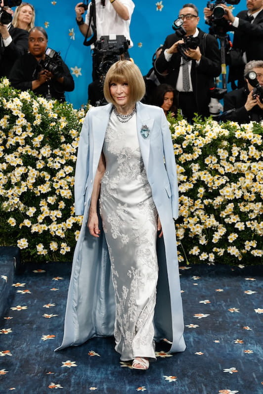 En robe satinée sous une veste XXL, Anna Wintour donne le ton au Met Gala 2025