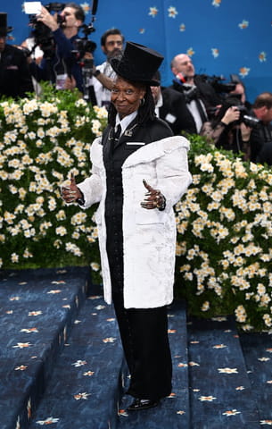Ce lundi 5 mai, Whoopi Goldberg a été aperçue sur les marches du Met Gala 2025. Une sortie importante pour laquelle l'actrice américaine s'est distinguée dans un look tout en noir et blanc. Plutôt qu'un simple smoking, elle avait misé sur une robe ultra longue aux allures de costume. La veste en fourrure blanche contrastait l'allure tandis que ses bottes bicolores se fondaient avec le reste. Enfin, elle a achevé sa tenue avec un chapeau haut de forme agrémenté d'une voilette. Un choix vestimentaire pile dans le thème "Superfine: Tailoring Black Style".