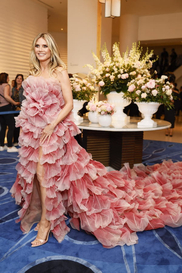 Ce 13 mai 2025, Heidi Klum a surpris tout le monde avec une somptueuse tenue lors de l'ouverture du 78e festival de Cannes. Elle s'est imposée devant les photographes dans une robe Elie Saab qui ressemblait à une gigantesque fleur. Le plus ? Sa coupe bustier, sa large fente dévoilant des sandales à talons accordées et sa traîne extra large qui tombait sur le tapis de l'hôtel Martinez. Et même si ce choix était risqué compte tenu des nouvelles règles vestimentaires de l'évènement, il en valait clairement le coup. Une prouesse mode !