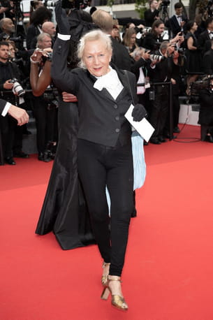 Les robes de red carpet ? Très peu pour Agnès B ! En effet, à l'occasion de la cérémonie d'ouverture du festival de Cannes organisée le 13 mai dernier, la célèbre créatrice française arborait un look androgyne parfaitement maîtrisé. À la fois noir et blanc, il se composait d'une veste de costume ajustée et fermée, d'une chemise au col lavallière et d'un pantalon à la coupe classique. Elle avait également misé sur une paire de gants, un sac à main porté à l'épaule et des talons dorés ouvert au bout pour sublimer son allure.