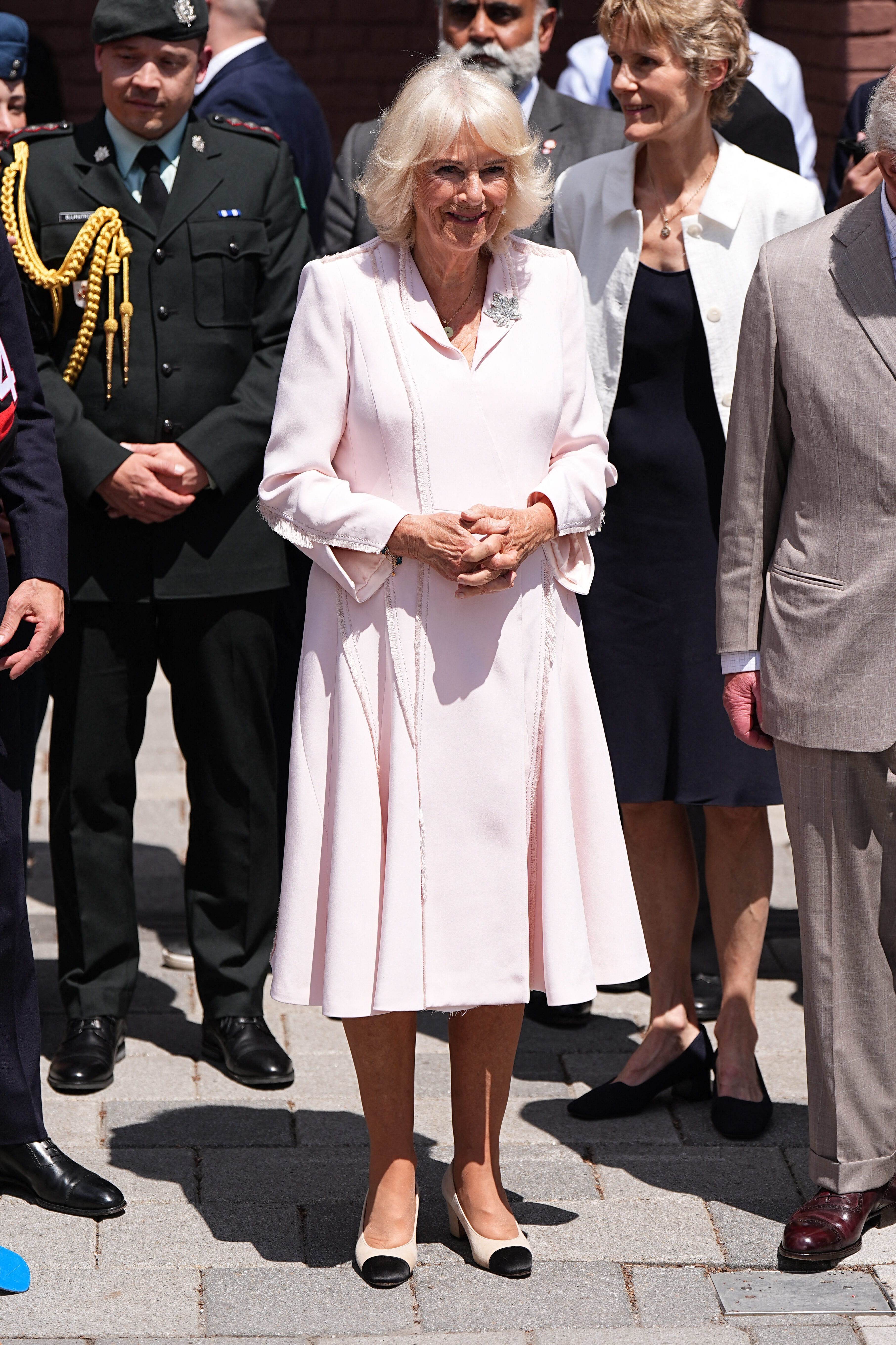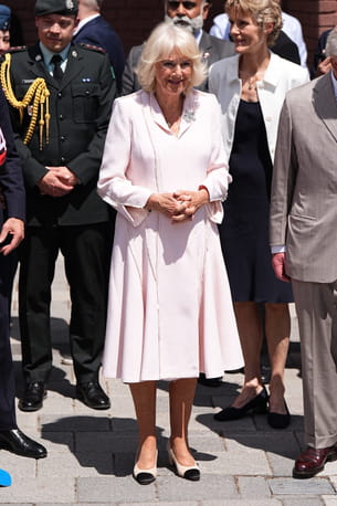 Le roi Charles III et la reine Camilla se sont rendus à Ottawa au Canada, ce lundi 26 mai. Pour sa descente de l'avion, elle avait choisi une tenue rose poudré absolument divine. En effet, elle portait une robe manteau de la marque Anna Valentine, un de ses indispensables. Pour compléter sa tenue, Camilla Parker Bowles a craqué sur une pièce cultissime issue d'une maison de luxe française. Il s'agit bien évidemment des babies Chanel. Un modèle plat à la fois confortable et élégant, qui lui allait à la perfection !